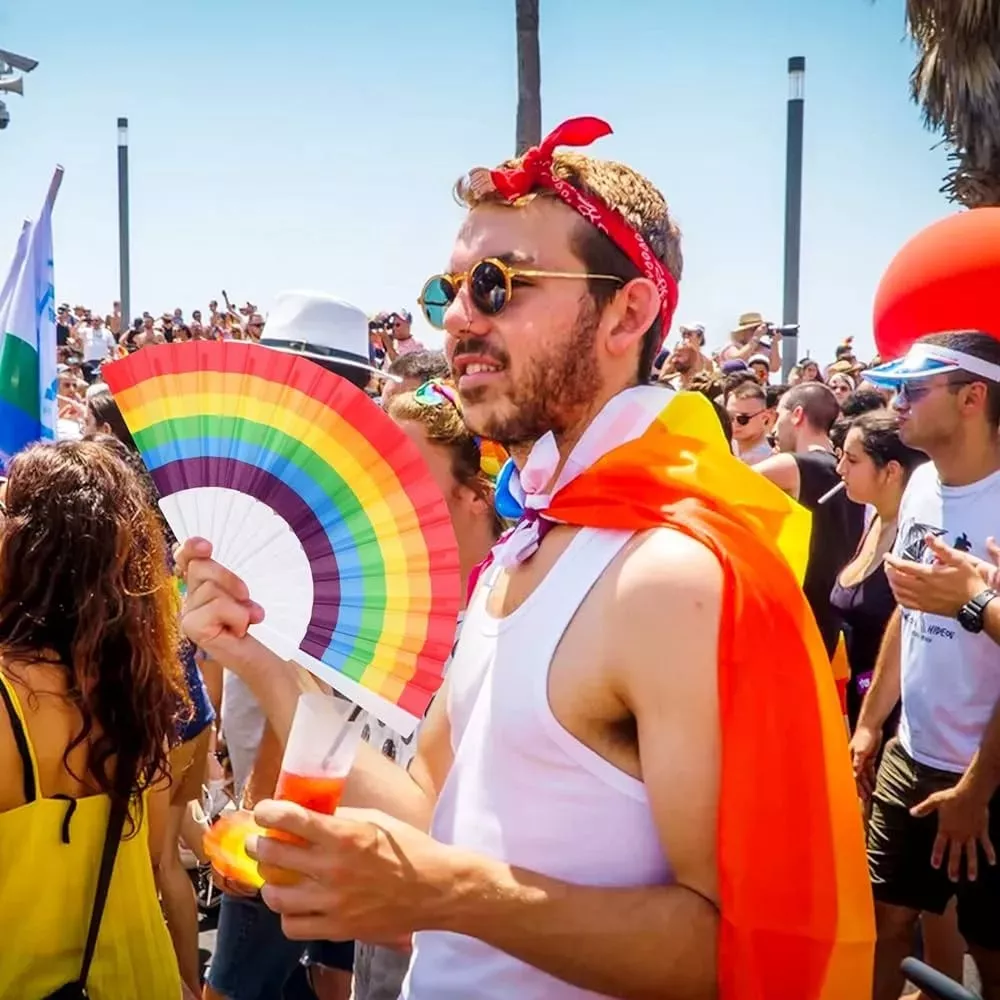 Descubre el vibrante Abanico LGBT, un accesorio perfecto para celebrar la diversidad y el orgullo. Con un diseño colorido que representa la comunidad LGBTIQ+, este abanico no solo es ideal como souvenir, sino también como una encantadora pieza de decoración. Sus medidas aproximadas son de 23 cm de largo y 42 cm de ancho máximo al abrirse, lo que lo convierte en un complemento práctico y atractivo. Fabricado en tela de alta calidad, con varillas de plástico de 22 cm, garantiza durabilidad y resistencia. Este abanico es apto para todos, ya que está diseñado para hombres, mujeres, niñas y niños. Su técnica aplicada es lisa, lo que resalta los colores vibrantes del arcoíris. Perfecto para eventos, festivales o simplemente para llevar contigo y mostrar tu apoyo a la diversidad. ¡Hazte notar con este hermoso abanico que celebra el amor y la inclusión!