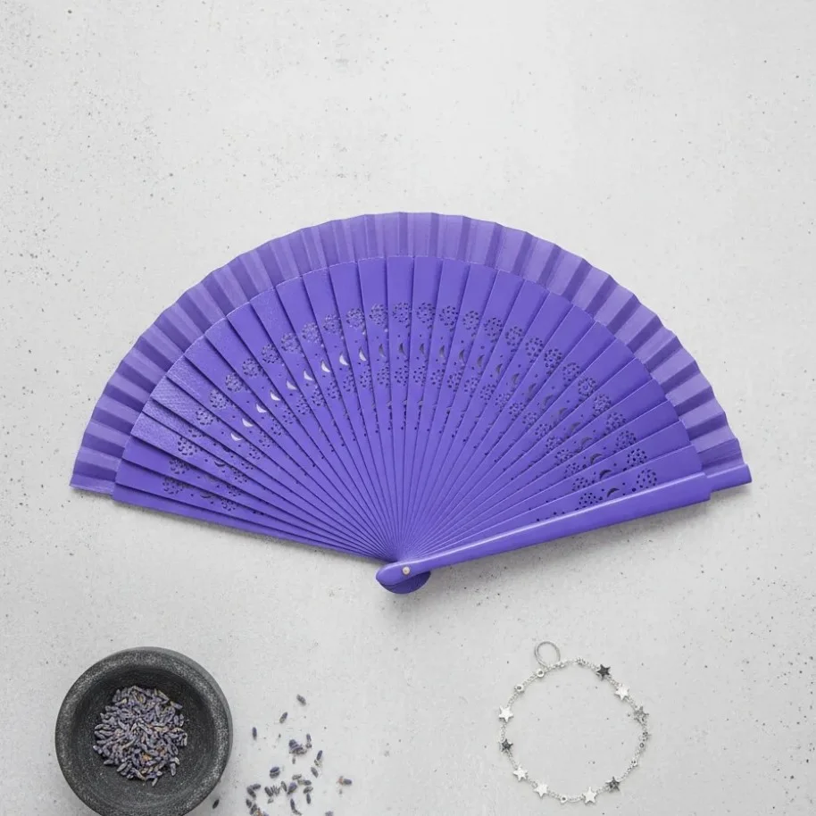 Abanico Moon And Stars pintado a mano Ambos lados