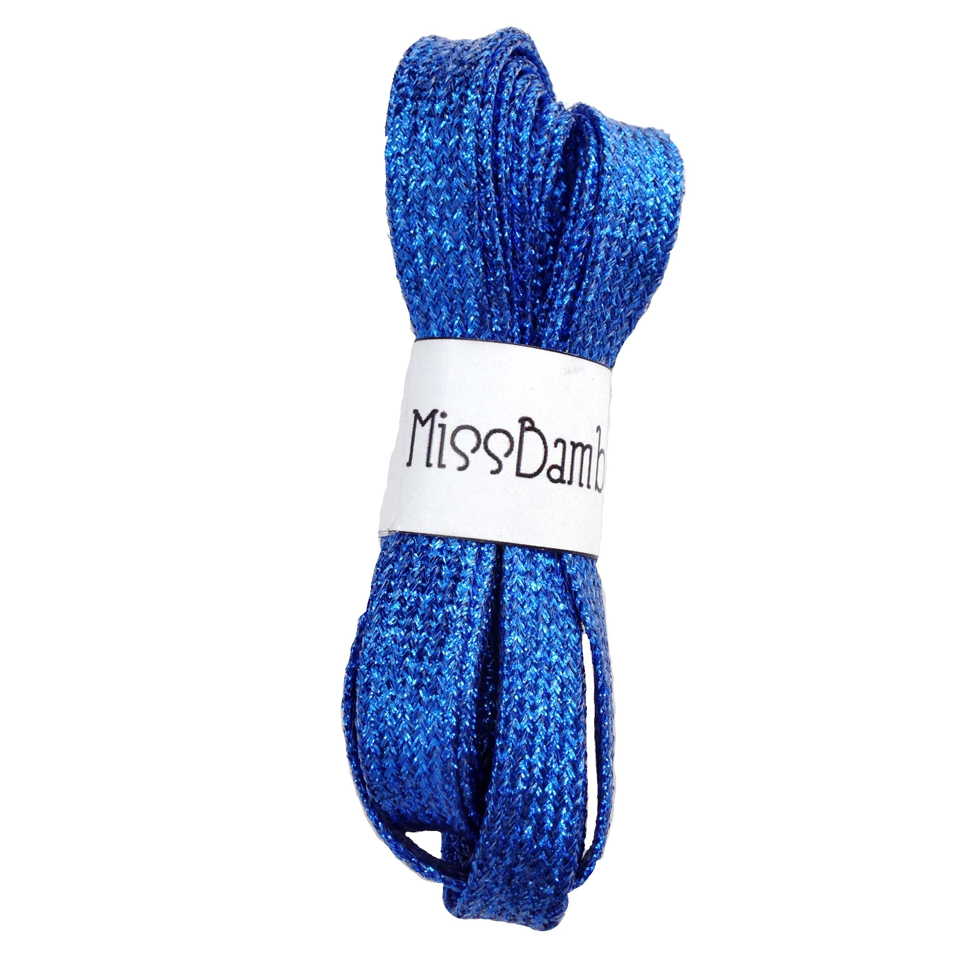 Cordones para zapatillas purpurina azulones fabricados en nylon con hilos metálicos que les dan un toque brillante.