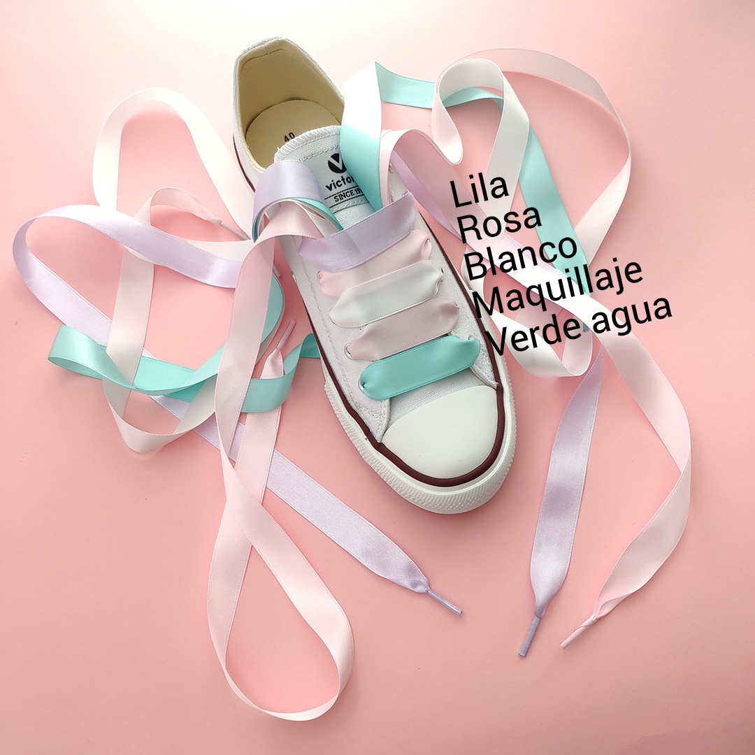 | Cordones raso | azul marino, Blanco, Lila, Morado, Rojo, Rosa, Verde agua |