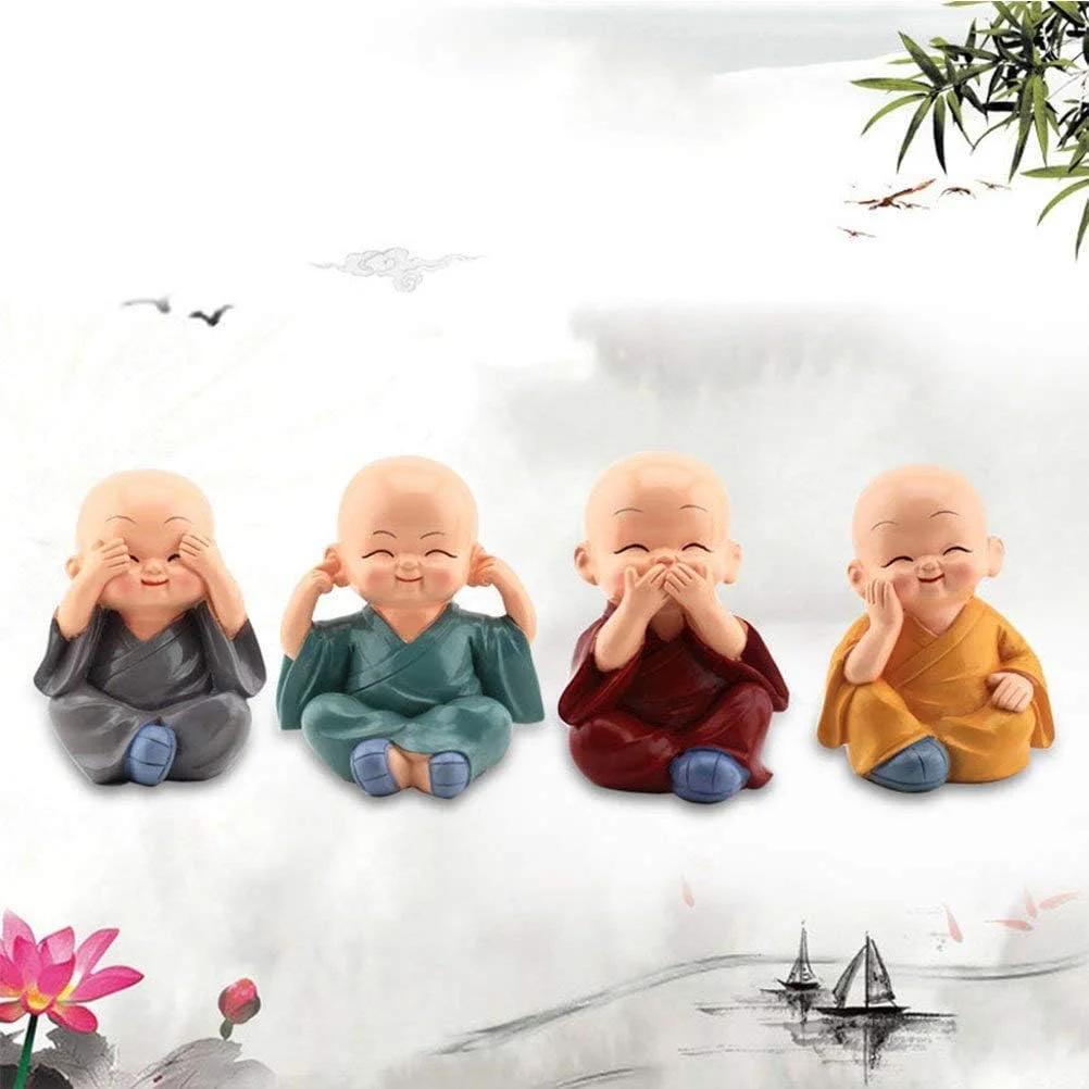 - ** Las decoraciones de resina de monja china hechas a mano te traen sonrisas, felicidad, tolerancia y sabiduría. Significa «no puedes ver el mal, oír el mal, decir el mal, hacer el mal», puedes ponerlo en tu escritorio, mesita de noche, tocador, oficina, coche, etc. donde quieras decorar.