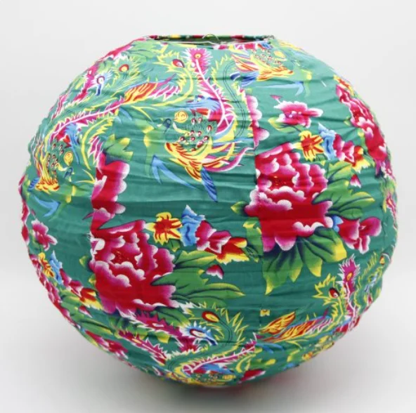 La lámpara esférica, con un fondo de color verde y estampados con motivos primaverales. Esta bola es de tela y contiene uno soportes metálicos que le dan la forma esférica, son muy fáciles de montar. Tiene un diámetro de 40 centímetros aproximadamente. Nuestros clientes, normalmente las utilizan como complementos para la decoración en determinados lugares. Este producto no contiene cable para la luz ni bombilla.