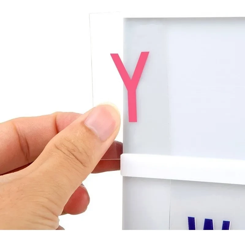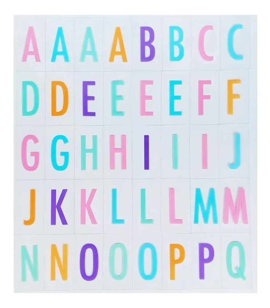 Repuesto de 90 Letras y Símbolos (Exhibidos en las imágenes) – ¡Ideal para colocar en los letreros led luminosos! – Medidas: 6,5 cm de alto x 3,5 cm de ancho. Se pueden recortar para que entren en todo tipo de cajas luminosas. – Color: Transparentes con Letras de Colores, tal como se ve en las imágenes (REALES).